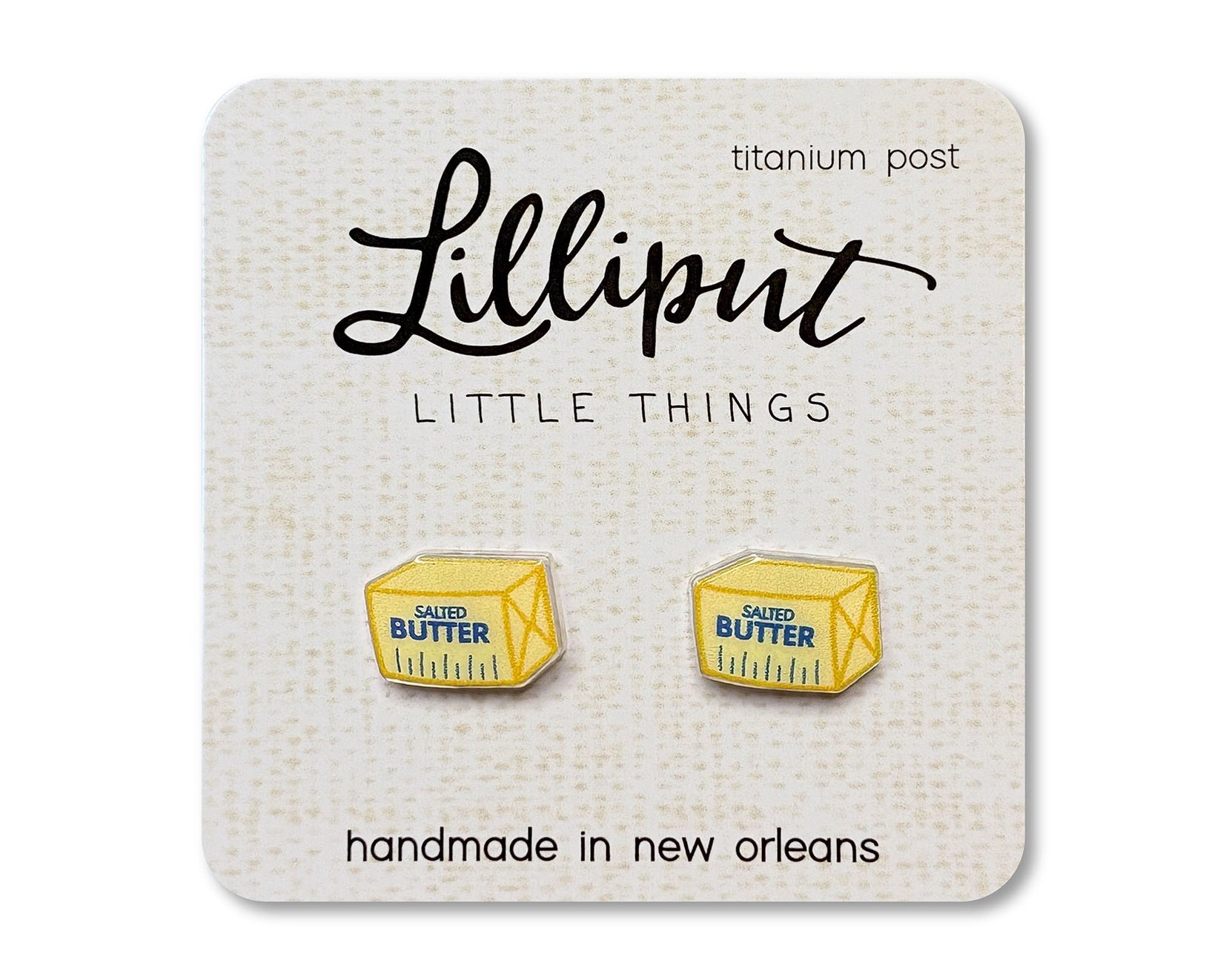 Get ready to turn heads with these whimsical Butter Earrings! Crafted with hypoallergenic titanium posts, they're gentle on sensitive ears and comfy enough to wear all day long. The eye-catching print stays vibrant and never fades, while 100% waterproof construction means they're ready for any adventure—rain or shine. These playful little gems are the perfect way to add a splash of personality to any outfit!