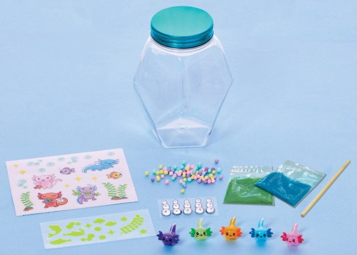 NEW Glowing Axolotl Aquarium from Creativity for Kids Everyone's favorite salamander the Axolotl has captured the hearts of kids and kidults everywhere, and you can have your very own Glowing Axolotl Aquarium! The glowing aquarium set includes a fun-shaped container, 5 axolotl figurines, glow bubbles, glow stickers and fun accessories. Add the magic-mix powder to water to create the perfect bubbly aquatic habitat! Ages 6+