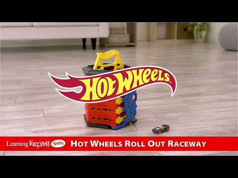 The Hot Wheels Roll Out Raceway Track Set is the ultimate in racing and storage in one cool and exciting package! When it's compressed, the Hot Wheels Roll Out Raceway serves as a convenient and portable storage container that can hold up to 80 die-cast cars and five track pieces. Unsnap it and reveal a 5-lane racetrack playset for multi-car competition. Up to five cars can compete at once, and with the fair starter mechanism, no one gets an unfair advantage. The winning car releases its numbered gate, which will appear in a window above the finish line, so there's no more too-close-to-call races! Includes one 1:64 scale Hot Wheels vehicle. Colors and decorations may vary. Ages 4+