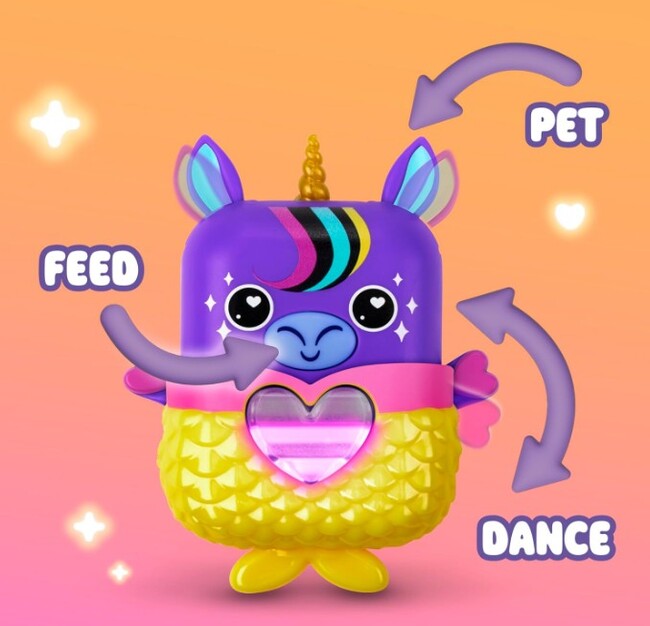 Meet the New Nano-mals! These pocket-sized, electronic pets are fidgety, fashionable, and full of personality ready for kids to love and care for! Play to fill their hearts! Press their ears, mouth, or arms or shake and flip them to respond to their needs and fill their color changing heart meters. They tell you what they need! The heart colors change and guide the fun: blue means pets, orange means hungry, pink means its time to dance, and purple means they want to walk and move! Celebrate with lights and sounds. When full of love, Nano-mals reward you with a cheerful song and a colorful light show. There are 8 in total to discover kitties, unicorns, narwhals, cows, red pandas, and more! Each Nano-mal is sold individually. When you order online, well surprise you by picking one at random and shipping it straight to your door! Recommended for Ages 5 - 10 years.