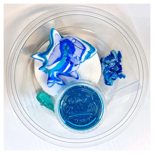This new Shark Bite Slime is ocean-themed slime with a thick, stretchy texture and refreshing aquatic scent! Includes fun DIY mix-ins like shark charms, faux blood drizzle, and ocean beads, for that fake but fun shark bite feel! Interactive and creative slime experience perfect for sensory play. Comes with a borax activator packet and care instructions for long-lasting play. Great for shark lovers, as a unique gift, sleepovers or party favors! Recommended for Ages 6+.