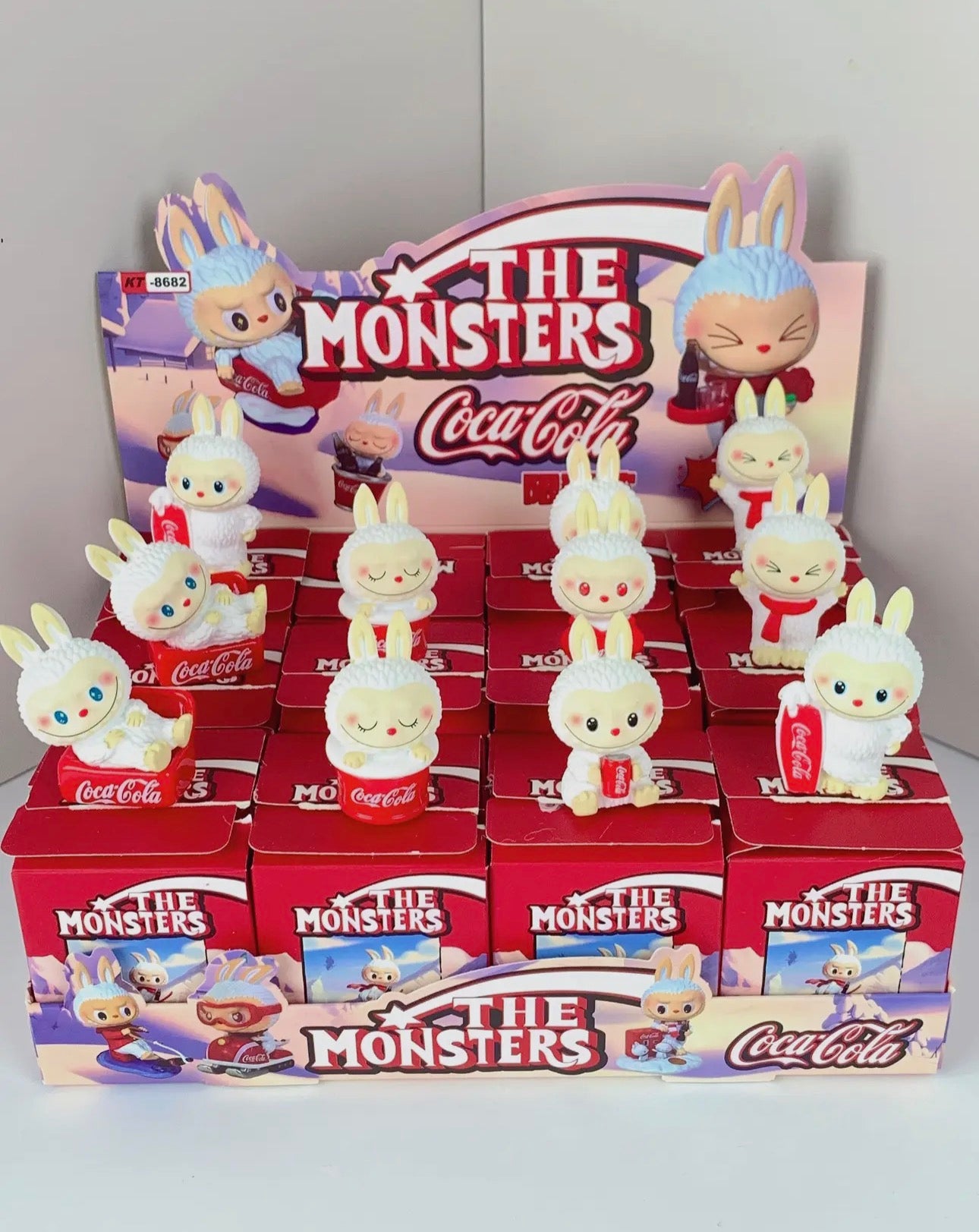 These mystery boxes each hide one unofficial Labubu-inspired “Coke” figure.